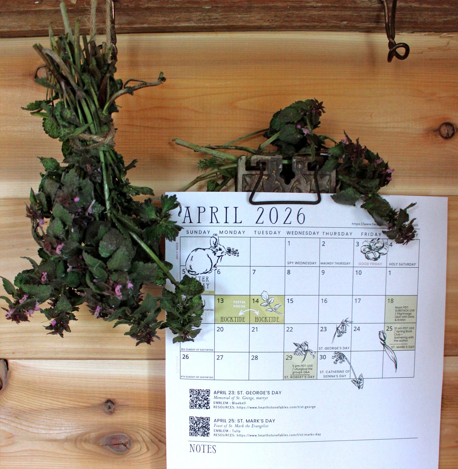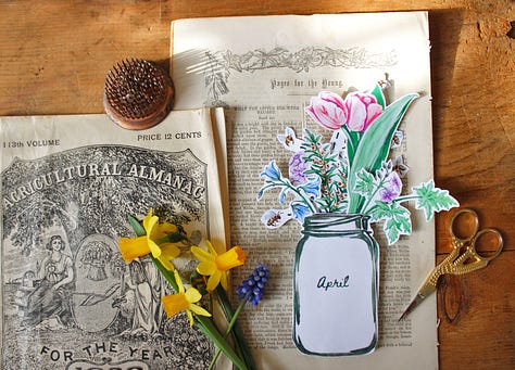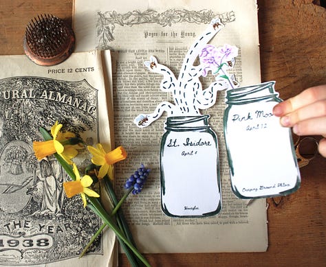 In each Almanac, you’ll find a ‘book of days’ to track this month’s HF gatherings & resources, as well as an ever-growing collection of art and resources to help you mark your days throughout April.