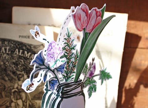 This ‘vase of days’ is designed to help us see April as a bouquet. Each image (hand-painted in gouache) is a prompt: an invitation to look at the holy wonder of these days & how they meet us in our own lives and landscapes.