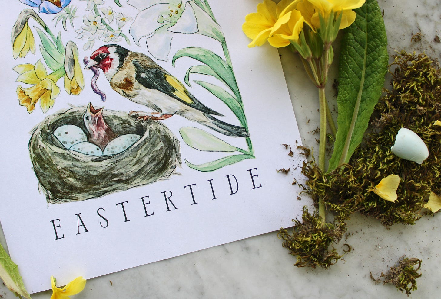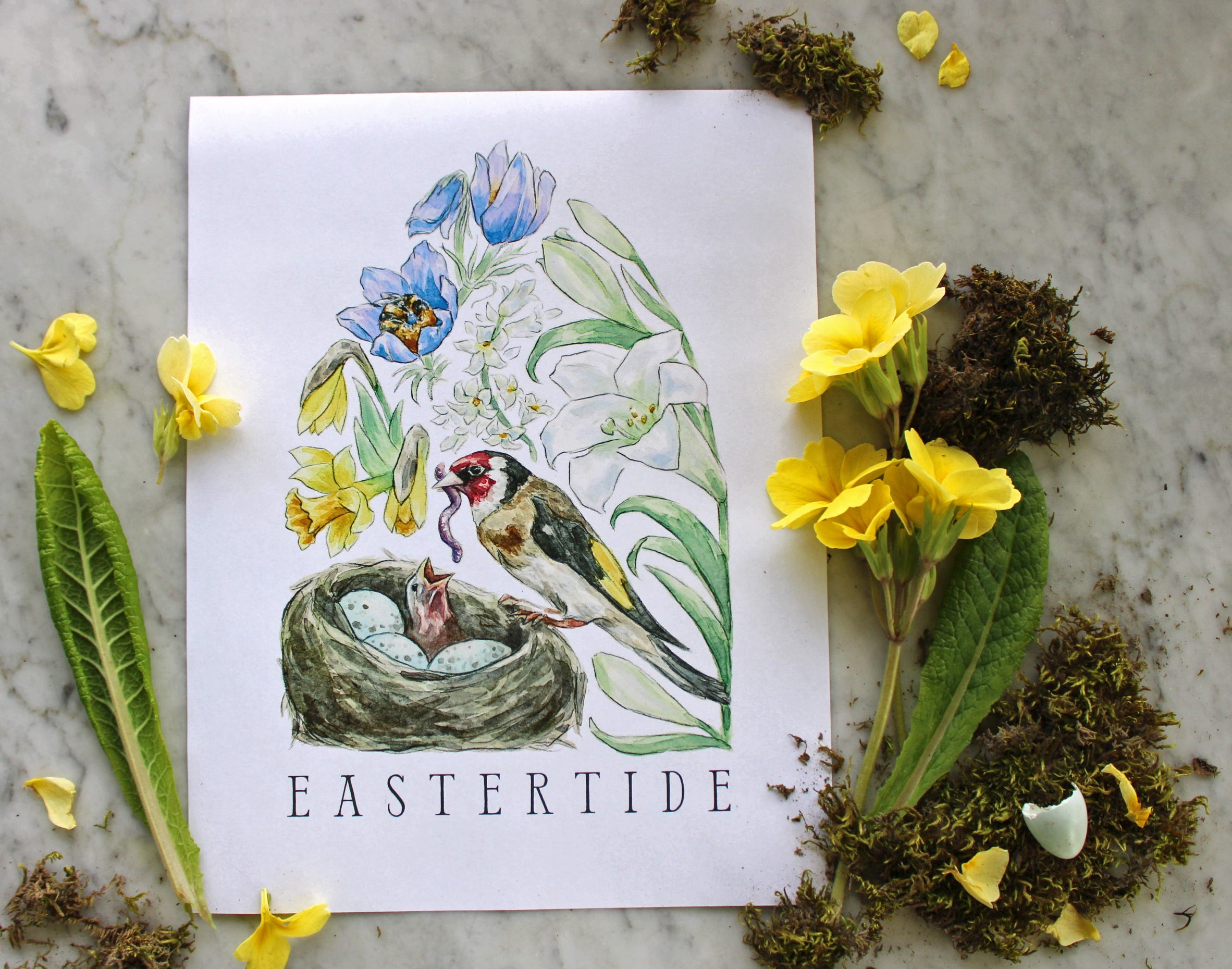 Friends, it’s been a DELIGHT getting to reflect on all the flora & fauna of Eastertide to tell this season’s story through a handful of their images. Your printable will include little snippets on why I chose each element for this arch, but I wanted to take a moment to highlight one in particular: the European Goldfinch, a multilayered emblem of salvation.