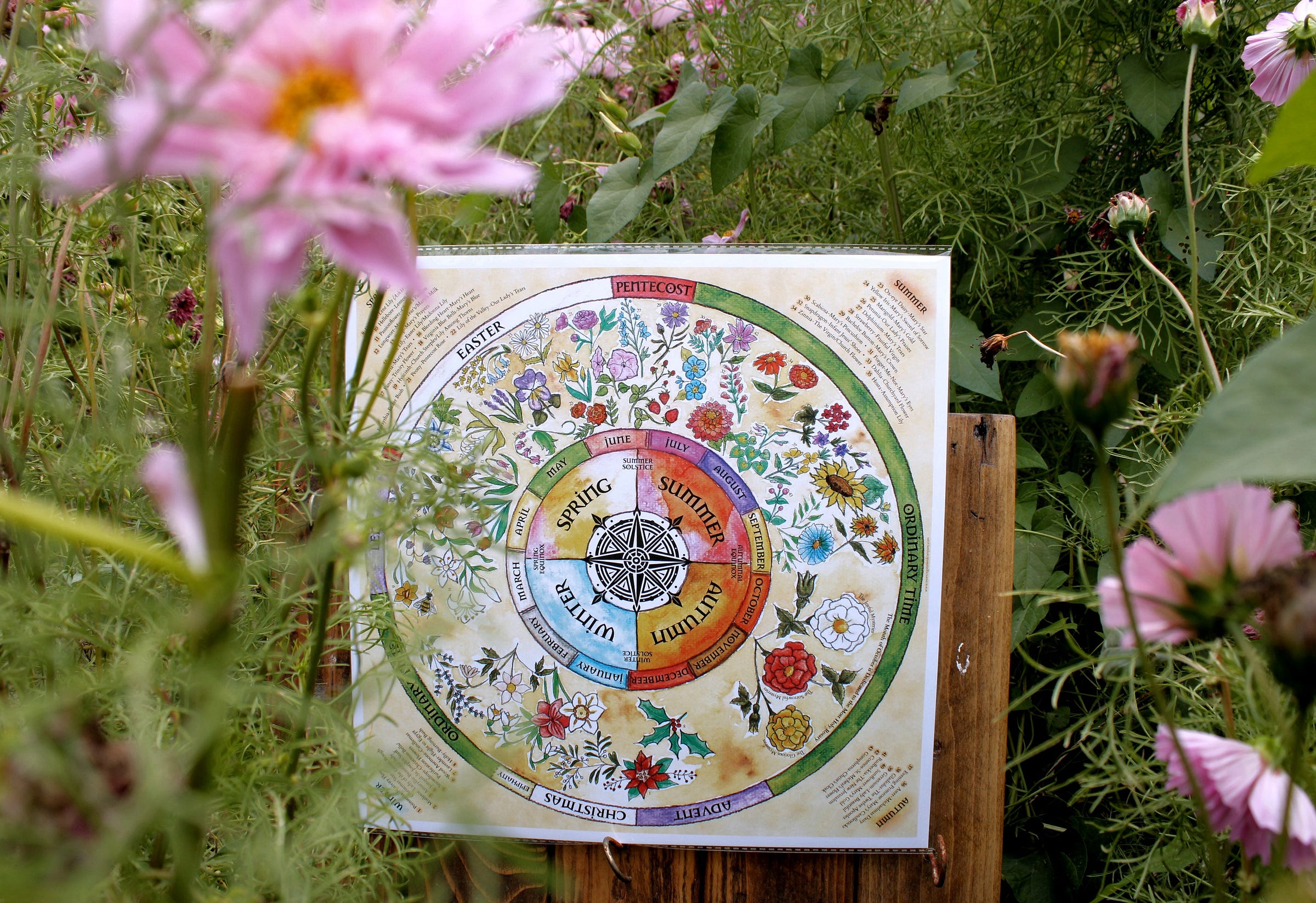 and Morning Star Seed Company, so generously sent me her beautifully, thoughtfully-illustrated liturgical year wheel to give to one of you lovely subscribers!