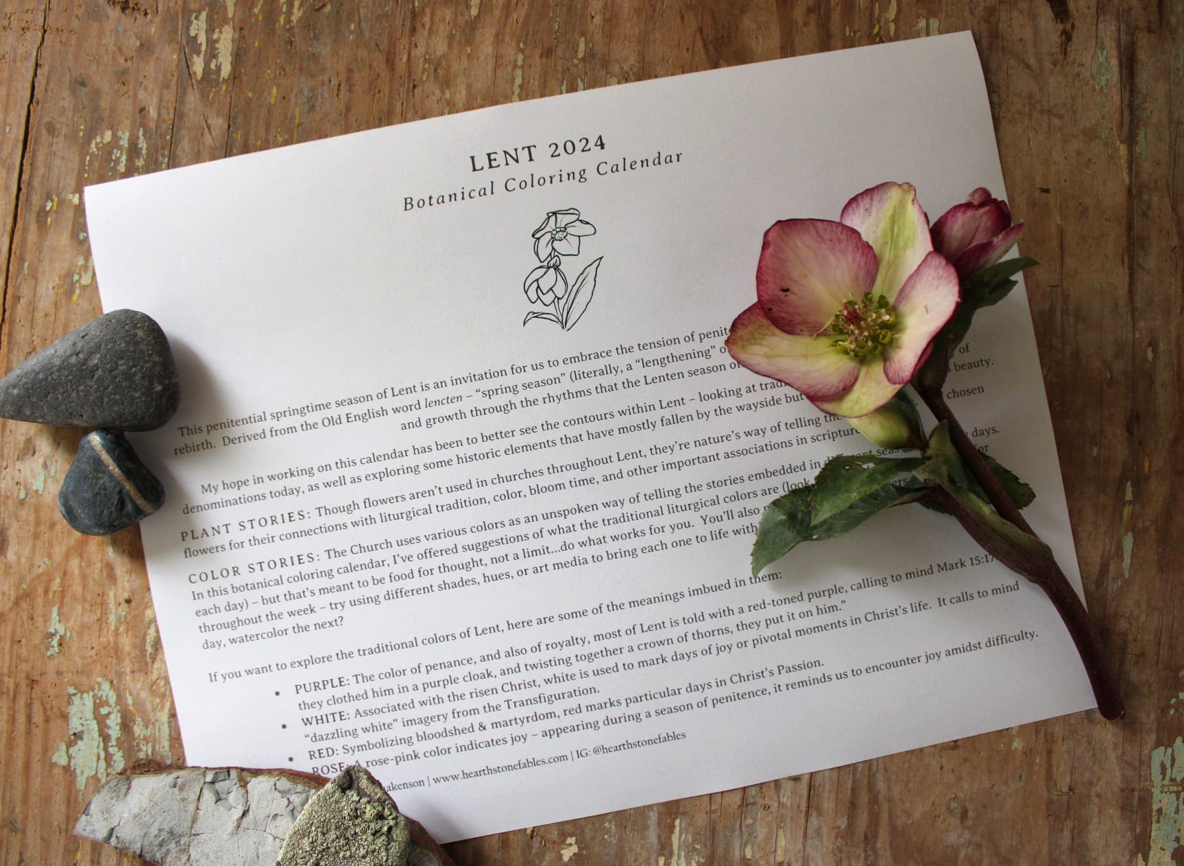 I created this Lenten botanical coloring calendar to help us better see the contours within Lent – looking at traditions that are kept by a variety of denominations today, as well as exploring some historic elements that have mostly fallen by the wayside but nonetheless offer so much beauty.