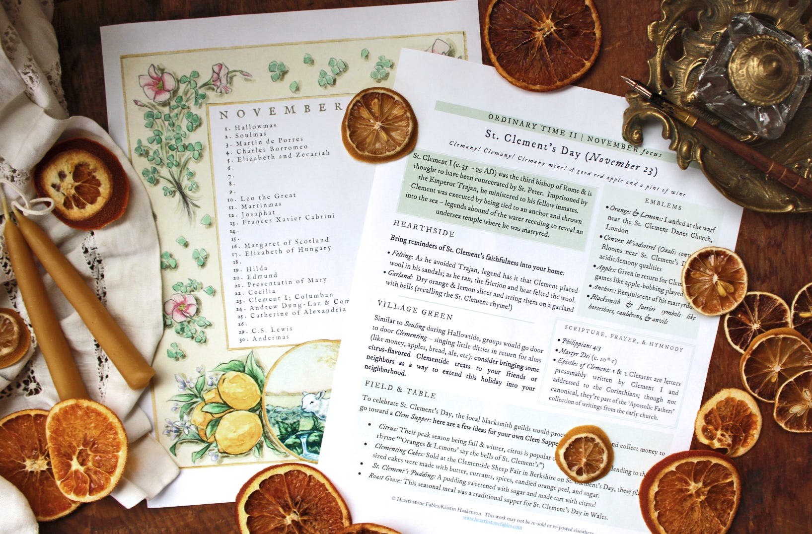 So, as you may have noticed in my previous St. Clement posts, I’m cleaving each month’s topic into several articles: one to welcome us to the feast, its holy figures, and agrarian context; one to further explore traditions of both the Hearthside and the Field & Table; and another to extend those out into the Village Green - bearing these holidays in community.