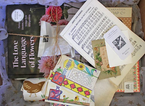 I also include the “Hearthstone Post” newsletter in each box, with a note about its theme and more details on each item…my pen pal dreams are coming true!