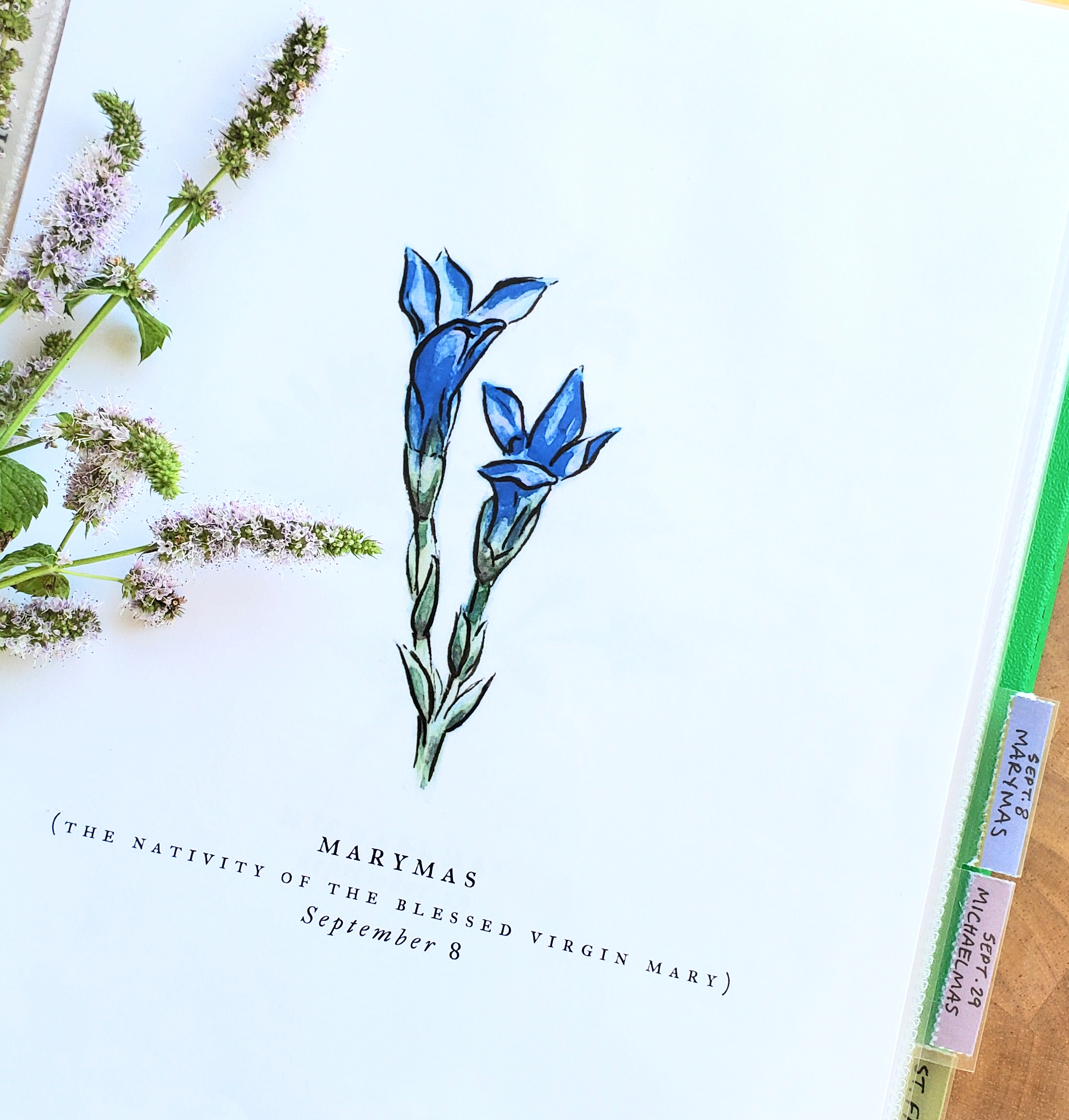Cover Sheet: This simple botanical cover sheet is designed for your Liturgical Calendar Binder - featuring Our Lady’s Fringes, a traditional flower of Marymas. You could also print it out and just post it to your fridge or bulletin board as a reminder of the colors and florals of Mary’s Nativity!