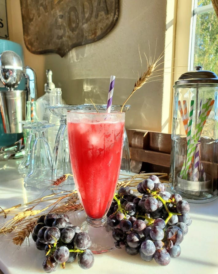 Concord grapes were developed in Concord, Massachusetts, and they're usually harvested from September to late October. These grapes would make a perfect addition to a liturgical soda fountain repertoire for Our Lady’s Nativity! Garnished with sprigs of wheat, this soda also serves as a reminder of the Eucharist.