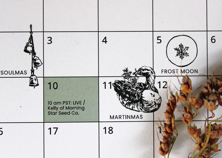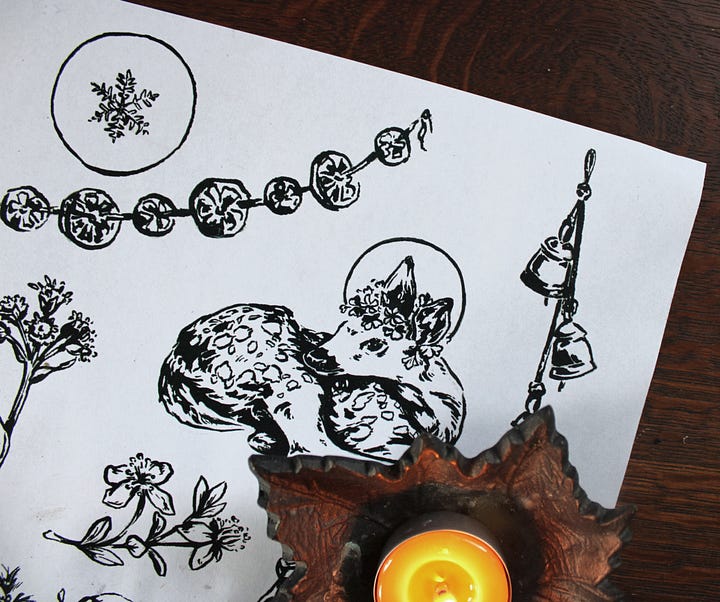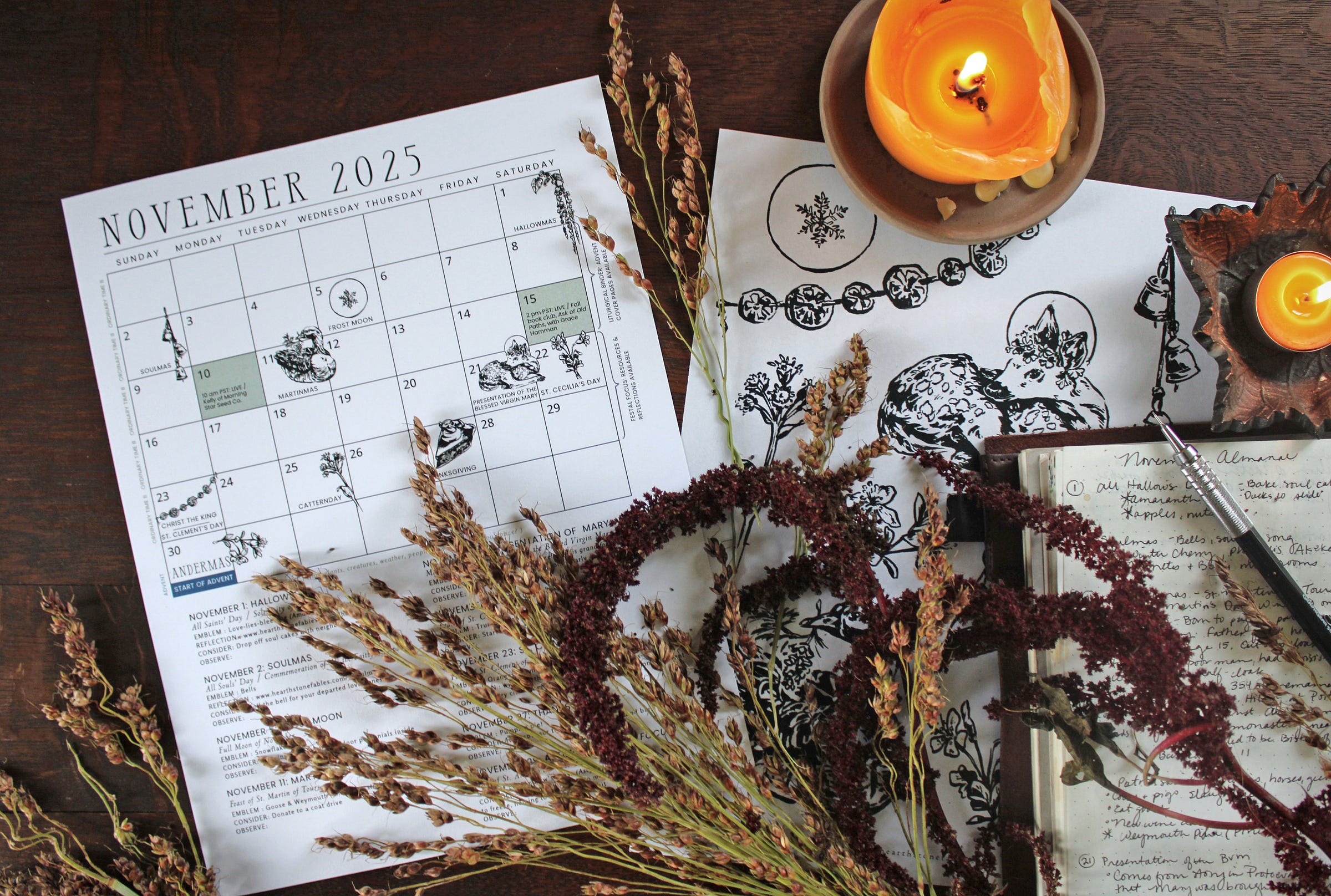 This month, as we settle into winter, I’m starting a new pattern for our Almanac resources - an at-a-glance calendar that you can print out, in the hopes of helping us all integrate some of these holy days and traditions more seamlessly into our already-full days. (I’m thinking ahead as I try to set boundaries around Advent, holding it as a preparatory season instead of a time that’s chock-full of action!)