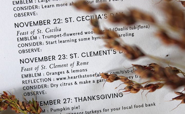As you can probably tell, I’m feeling convicted to be mindful of our pace in this coming Advent season - and, more than ever, I’m noticing the beautiful preparatory offerings in the calendar’s November traditions…feasts that help to align us toward a new year in Christ by calling us to go deeper into our spiritual disciplines and our community involvement.