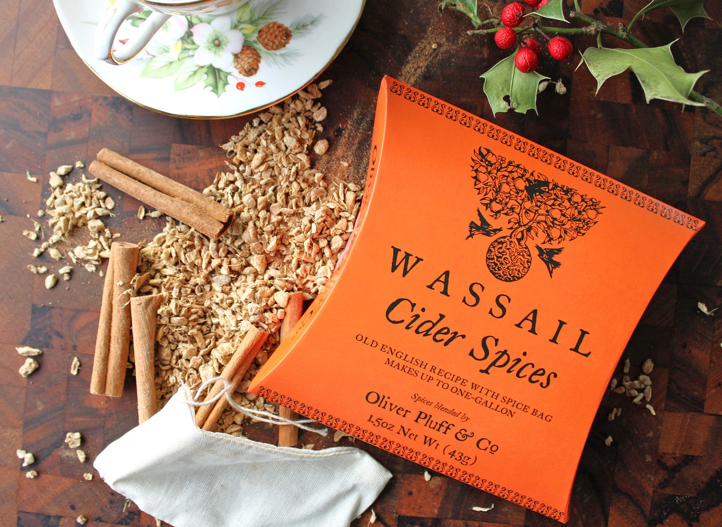 This Oliver Pluff & Co. pack of wassail spices is truly a thing of beauty: the spices are hand-blended and packaged, and they’ve thoughtfully included a little muslin bag for steeping.
