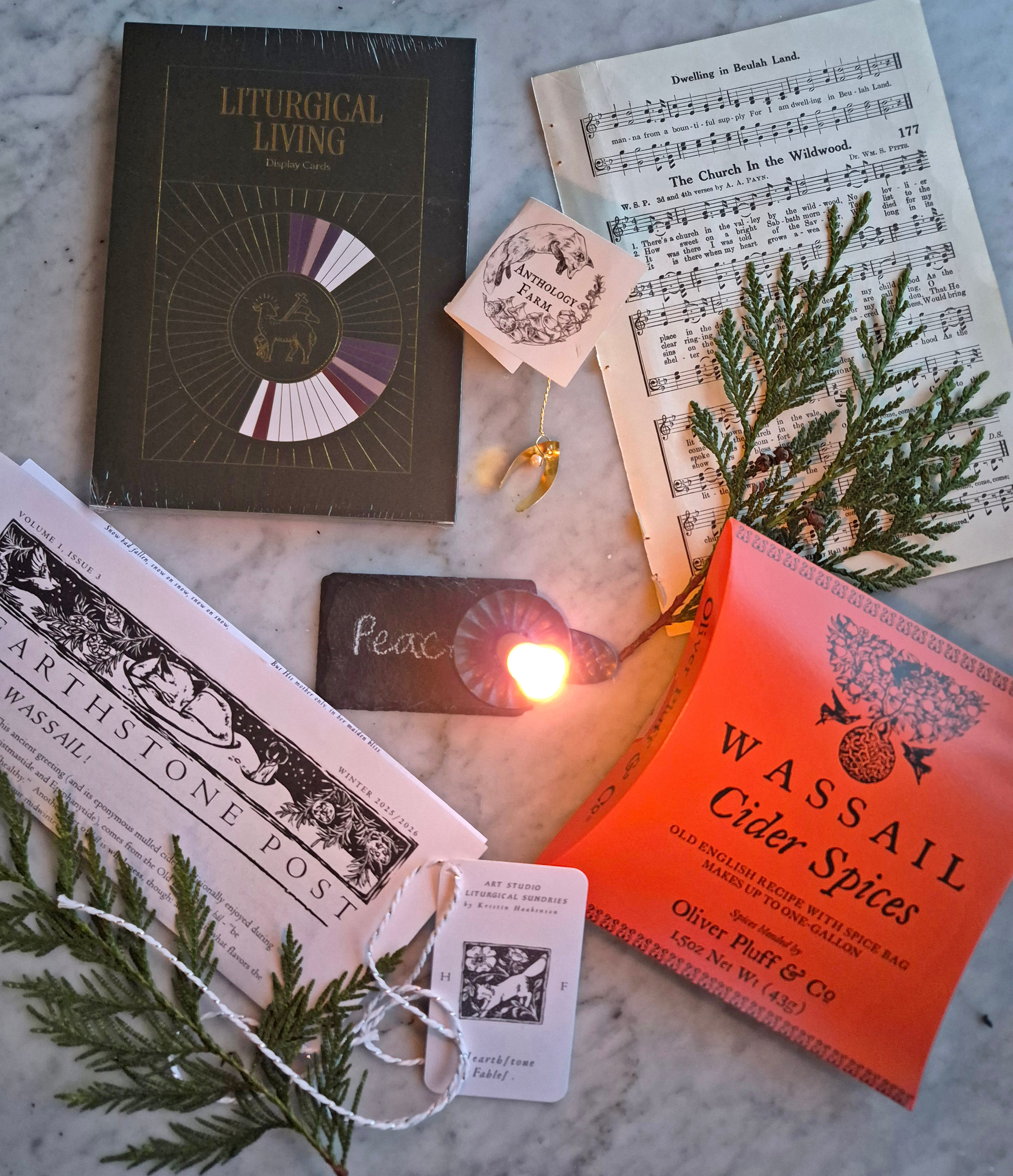 The theme that guided the 2025/2026 Winter box was WASSAIL…an ancient greeting (also an eponymous mulled cider) that comes from the Old English wes hál: “be well/healthy.”