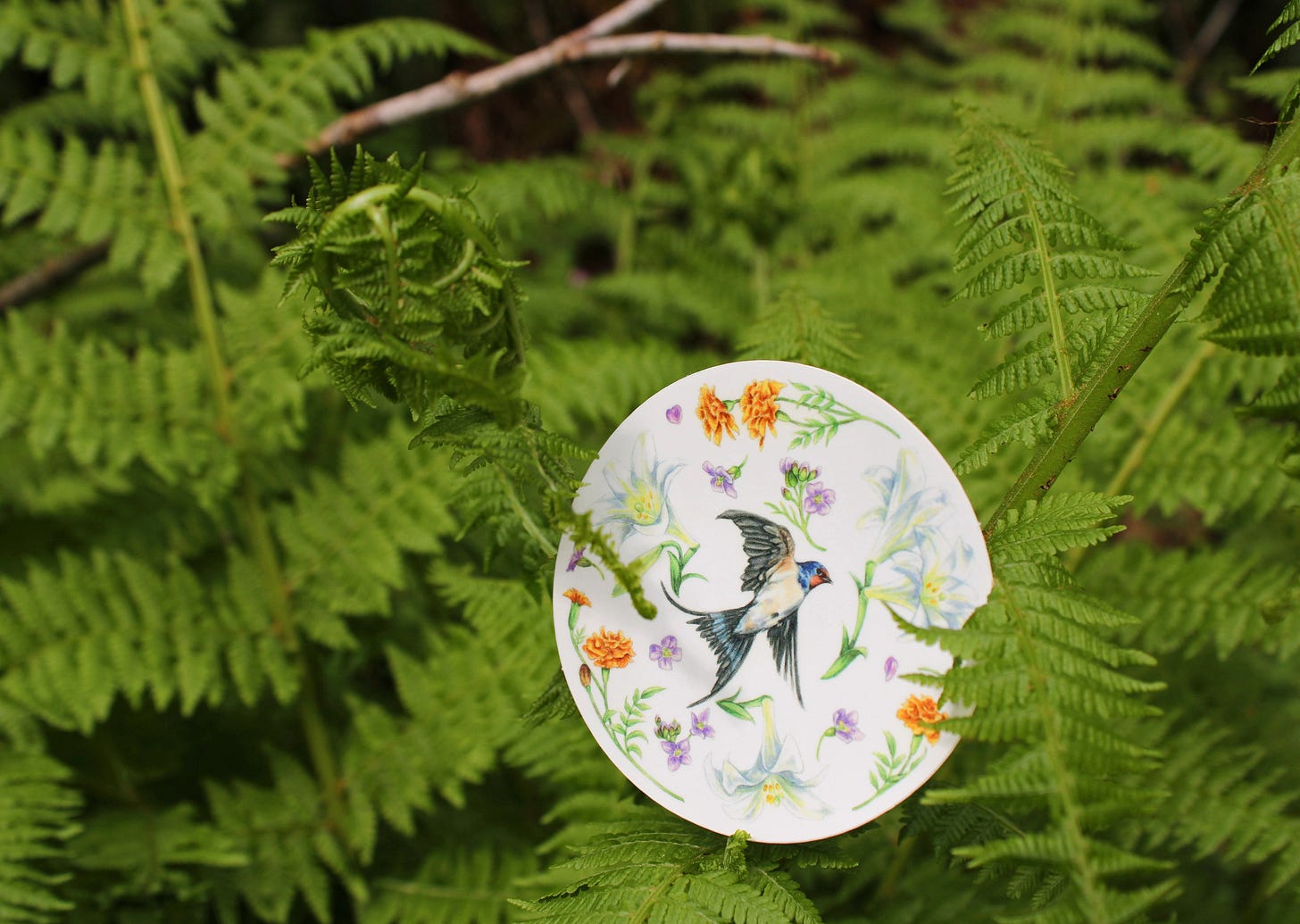 This Annunciation wheel features the swallow - that migratory bird of the resurreciton, so often featured in historic Annunciation artwork - surrounded by a wreath of florals symbolic of this poignant holiday.