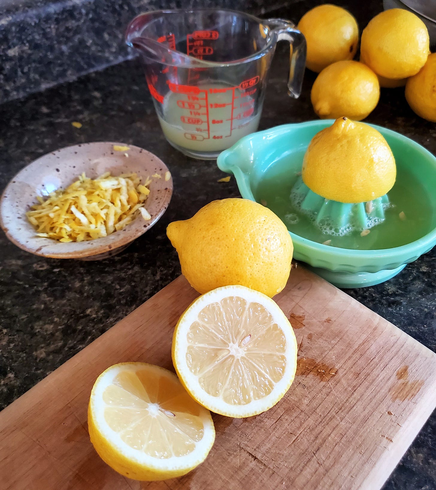 Since lemons - representing fidelity7 - have long been associated with Mary, we made syrup from fresh-squeezed lemons. Add a little carbonated water, and voila - lemon soda. (You could add stillwater instead to make lemonade!)